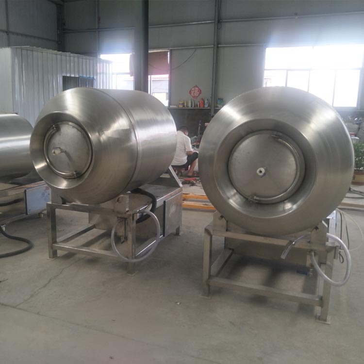 效率方麵,真空滾揉(róu)機展現了顯著的(de)優勢。傳統醃製(zhì)工藝依賴時間的自然作用,而真空(kōng)滾揉通過物理手段加速了這一過(guò)程。例如,某些產品原本(běn)需要24小時以(yǐ)上(shàng)的靜態醃製,使用真空滾揉機後可能隻(zhī)需(xū)4-6小時。設備容量從50升到(dào)2000升不(bú)等,能滿足不同規(guī)模企業的生產需求。連續作業模(mó)式(shì)下,一台設(shè)備可替(tì)代多個傳統醃製缸的工作量,大大提高了空間利用率。