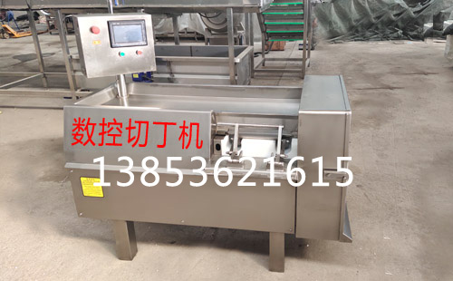 火龍果切丁(dīng)機有兩個(gè)主要動作,推料運動與切(qiē)割運動。推料運動(dòng)是用推杆將切割槽內的肉料向前推(tuī)向刀柵區,切割運動是將肉料切(qiē)成肉(ròu)丁。當前門關閉,側壓機構完成側壓運動時,相應的感應開關動作,接通(tōng)控製(zhì)電源,令推杆前進擠壓肉料,刀柵及(jí)切刀開始(shǐ)工作,切割肉料。當推杆將推(tuī)塊推向前麵時,推塊下方的感應(yīng)開關動作,刀柵及切刀停止切割,同時推杆帶動推塊快速返(fǎn)回直回到起始(shǐ)點(diǎn),推塊下方的另一感應開關(guān)動作,推塊停在原處,完成一個工作周期,再次加料,準備下一(yī)次切割。主電機經減速器帶動刀柵,作上下及左右往複運動,將推塊推出的肉料切割成條狀,再由主切刀將肉(ròu)條(tiáo)切割成肉丁。